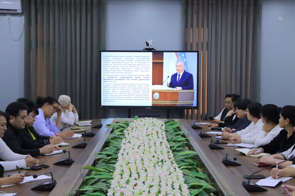 Seminarni O‘zbekiston kasaba uyushmalari Federatsiyasi Toshkent viloyati Kengashi raisi S.Fayziyeva kirish so‘zi bilan ochib, yig‘ilganlarni yaqinlashib kelayotgan kasaba uyushmalari harakatining 120 yillik bayrami munosabati bilan tabrikladi. Shuningdek, O‘zbekiston Respublikasi Prezidenti Shavkat Mirziyoyevning 17-oktabr kuni kasaba uyushmalari faollari va faxriylari bilan bo‘lib o‘tgan uchrashuvida sakkizta yo‘nalish bo‘yicha ilgari surilgan tashabbuslarni amalga oshirish, bu borada tarmoq kasaba uyushmalari, tuman-shahar kengashlari va boshlang‘ich tashkilotlar imkoniyatlaridan to‘laqonli foydalanish, kasaba uyushmalari faoliyatini tubdan takomillashtirish bo‘yicha atroflicha ma’lumot berdi. “Kuchli kasaba uyushmalari – kuchli jamiyat asosi!” degan tamoyilning bugungi kundagi ahamiyati ta’kidlandi.