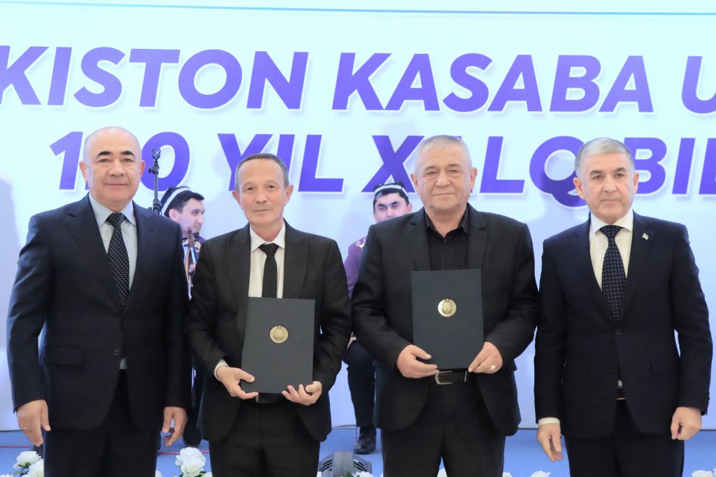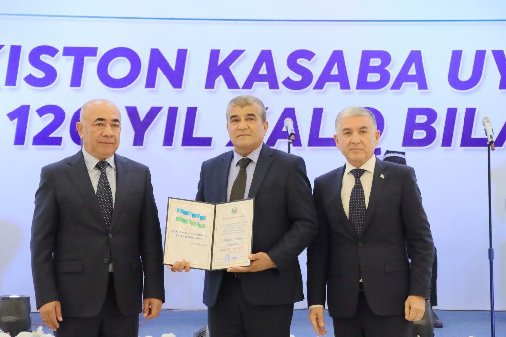 O‘zbekiston kasaba uyushmalari harakatining 120 yilligi munosabati bilan O‘zbekiston kasaba uyushmalari Federatsiyasining joriy yil 2 oktabrdagi qaroriga asosan mehnat faoliyatida yuqori natijalarga erishgan, kasaba uyushmalari harakatiga katta hissa qo‘shgan, nufuzini oshirib, xodimlarning mehnat huquqlarini himoya qilishda faol ishtirok etgan soha xodimlari va kasaba uyushmasi hamkorlari “O‘zbekiston kasaba uyushmalarining 120 yilligi” esdalik ko‘krak nishoni bilan mukofotlangan.
