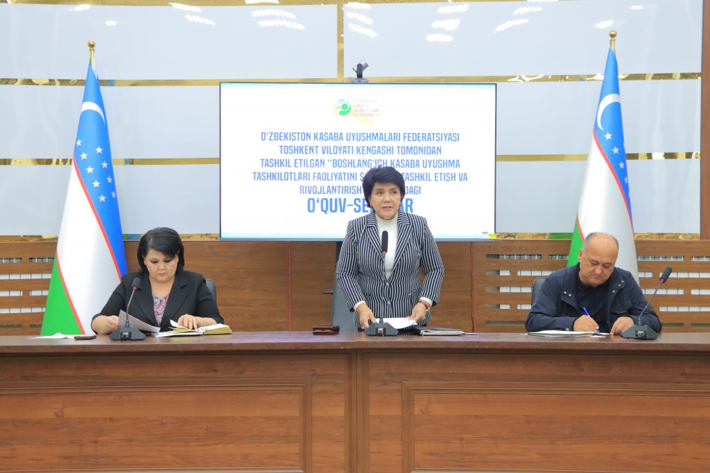 O‘zbekiston kasaba uyushmalari Federatsiyasi Toshkent viloyati Kengashi tomonidan tashkil etilgan “Boshlang‘ich kasaba uyushma tashkilotlari faoliyatini samarali tashkil etish va rivojlantirish” mavzusidagi navbatdagi o‘quv-seminar Chinoz tumanida davom ettirildi.
