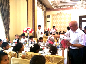 1 июнь “Ҳалқаро болаларни ҳимоя қилиш куни” муносабати билан Тошкент вилоятининг Тошкент тумани ҳокимлиги, туманда фаолият кўрсатаётган тармоқ касаба уюшмалари кенгашлари ҳамда ҳомий ташкилотлар ҳамкорлигида 2018 йилнинг 1 июнида Тошкент тумани марказида жойлашган “Муҳаббат” ресторанида 260 нафар кам таъминланган, боқувчисини йўқотган, ижтимоий ҳимояга муҳтож, махсус ҳисобдан чиқарилган оилалар фарзандлари ҳамда 40 нафар ногиронлиги бўлган болаларни маънавий ва ижтимоий қўллаб-қувватлаш мақсадида тадбир ўтказилди.