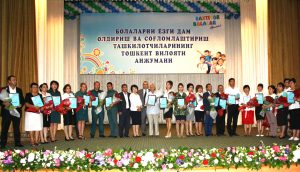 Барча тақдирланганларга вилоят Мувофиқлаштирувчи гуруҳининг Дипломи, “Бахтиёр болалар мамлакати” статуэткаси ва Тошкент вилояти касаба уюшмаси ташкилотлари бирлашмаси Кенгашининг қимматбаҳо эсдалик совғалари тақдим этилди.
