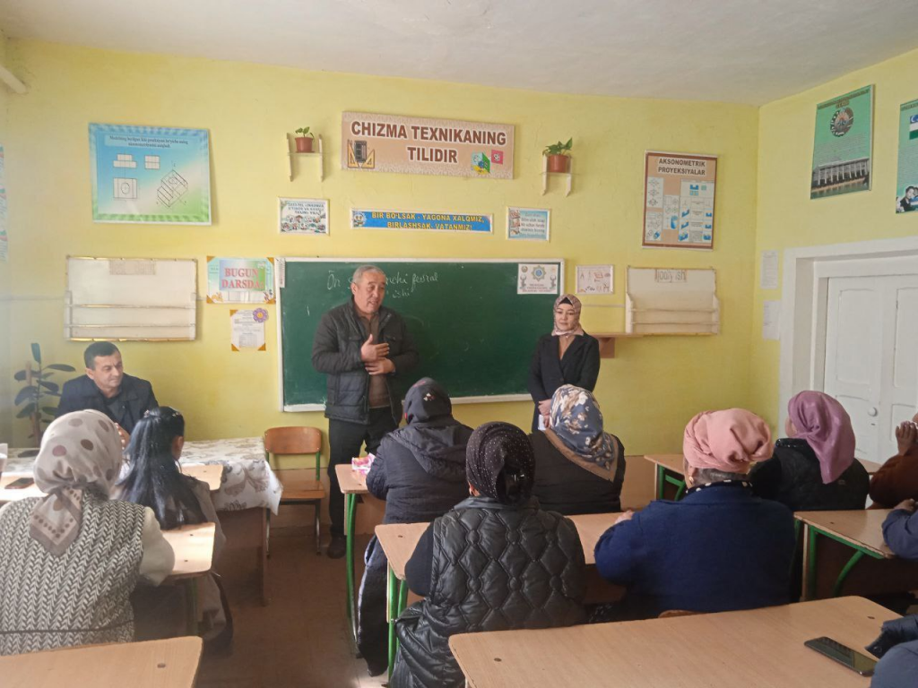 Mehnat jamoasining umumiy yig‘ilishida ish beruvchi hamda BKUT raisining hisobotlari tinglandi. Yig‘ilishda boshlang’ich kasaba uyushma tashkiloti raisligiga saylov, qo‘mita a’zolari tarkibiga saylov, tuman tashkiloti konferesiyasiga delegat, mehnat muhofazasi bo‘yicha vakil saylovi kabi masalalar ko‘rib chiqildi.