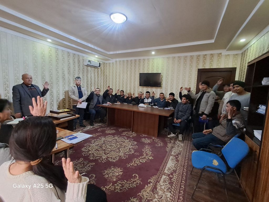 Kun tartibida 2020-yil fevraldan 2025-yil fevralgacha bo‘lgan davrdagi faoliyati va kelgusidagi vazifalari bo‘yicha boshlang‘ich kasaba uyushmasi tashkiloti raisi M.Muzaffarovning hisoboti tinglandi hamda kasaba uyushmasi qo‘mitasi raisi, qo‘mita a’zolari, tuman kengashi konfrensiyasiga delegat saylovlari o‘tkazildi. Umumiy yig‘ilishda tuman kengashi raisi M.Madaliyeva ishtirok etdi.