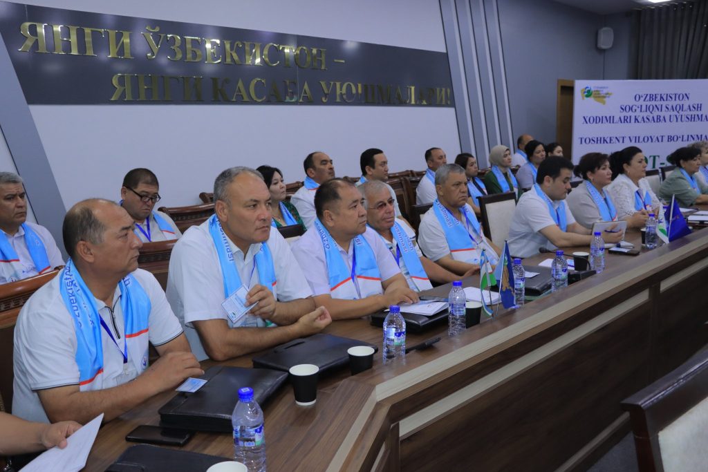 Joriy yilning 19-iyun kuni O‘zbekiston kasaba uyushmalari Federatsiyasi Toshkent viloyati Kengashining katta majlislar zalida O‘zbekiston Sog‘liqni saqlash xodimlari kasaba uyushmasi Toshkent viloyati bo‘linmasining hisobot-saylov konferensiyasi bo‘lib o‘tdi.