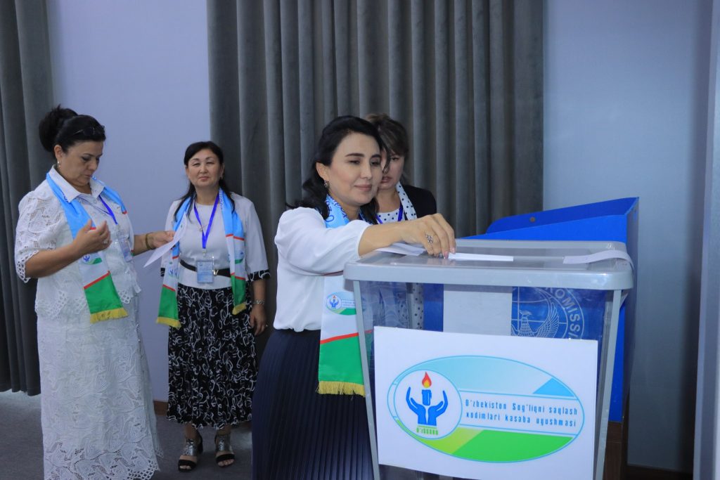 Hisobot-saylovlarni o‘tkazish to‘g‘risidagi Nizomning 3.3.22. bandida ishlab chiqarishdagi asosiy ishidan ozod etilgan kasaba uyushmasining hududiy kengashlari raislari va rais o‘rinbosarlari saylovi muqarrar ravishda muqobillik asosida, yashirin ovoz berish yo‘li bilan o‘tkazilish belgilanganligini inobatga olib, muqobillik asosida yashirin ovoz berish yo‘li bilan O‘zbekiston Sog‘liqni saqlash xodimlari kasaba uyushmasining Toshkent viloyati Kengashi raisi lavozimiga kelgusi besh yil muddatga Ataxodjayev Ziyodillaxon Muzaffarovich qayta saylandi. Shu bilan birga viloyat Kengashi tarkibi hamda taftish komissiyasining tarkibi va taftish komissiyasi raisi saylandi.