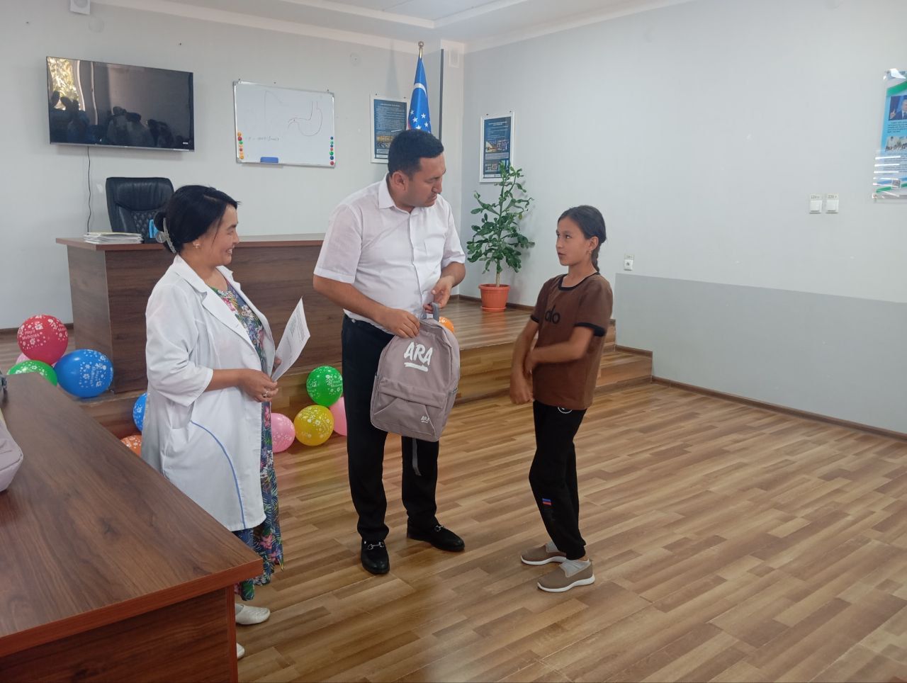 Tibbiyot birlashmasida faoliyat yuritayotgan 40 nafar ishchi-xodimlarning farzandlariga bayram munosabati bilan maktab sumkalari va o‘quv qurollari sovg‘a qilindi.